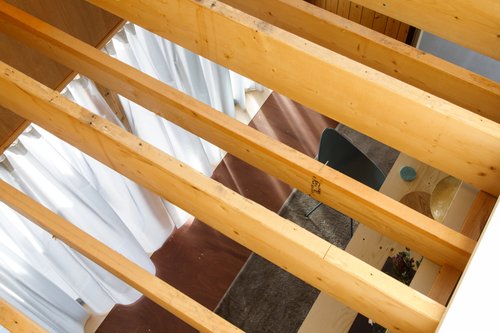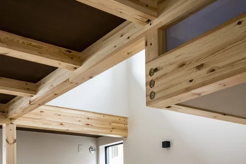 仕上についても、既製建具や量産クロス、クッションフロアなど極力ハウスメーカーの仕様にならった。構造躯体や木との関係を整理することで、コストを抑えながら変化のある空間をつくった。