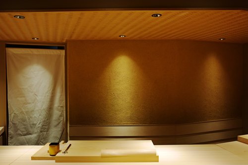②職人と客が対面し食事を楽しむという江戸前鮨の根本にある形式を引き立たせる。