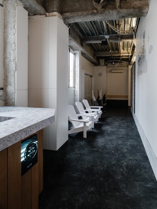 今後長く営業していく中の変化を受け入れる「プラットフォーム」としての空間づくりは、庭づくりと言えなくもない(はず)。エレベーターに乗って4階にあがっても、まちにいる感覚がグラデーショナルにつながっていくことで、「すばらしい日常」を感じられるサウナを目指しました。