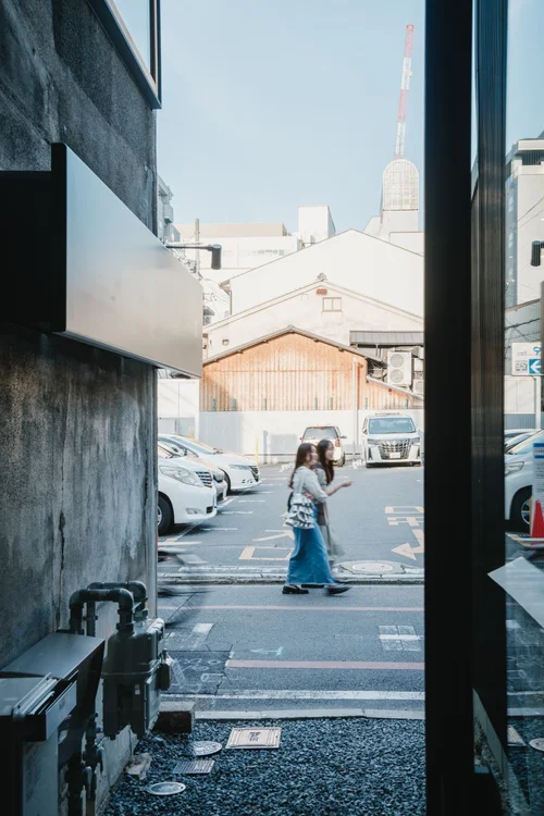 古いものが古いものとして現れるのではなく、古いものが新しさを感じさせる、常に現在進行形の空間がある。ビルの2階であっても、内部に鈍く映り込んだ、商店街や隣のビルの階段越しに入り込む風景を微かに感じられる、そんな空間を目指しました。